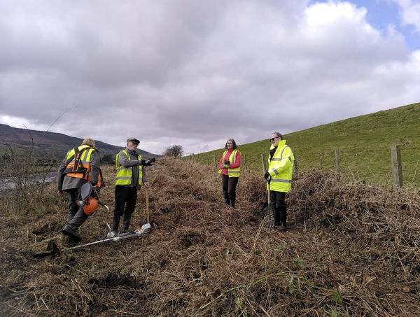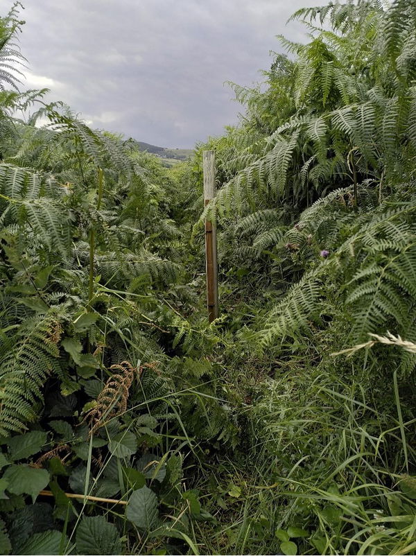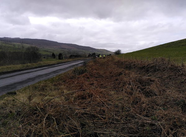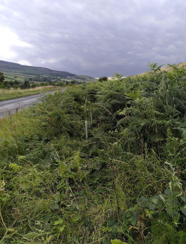 After Alan Winlow worked with NCC to identify a suitable, large, verge to plant the 150 saplings, and 5 large standard trees, we needed to make three paths through the dying down bracken. Carefully, of course, so as not to disturb any habitats.