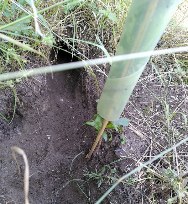 Rabbits appear to have made burrow holes by many of the saplings. I am sure these holes were not here when we planted. I am fascinated by this, and wonder if they do it as some kind of navigation? I mean, they can easily see, from the sapling, where an entrance is? Might this be possible?