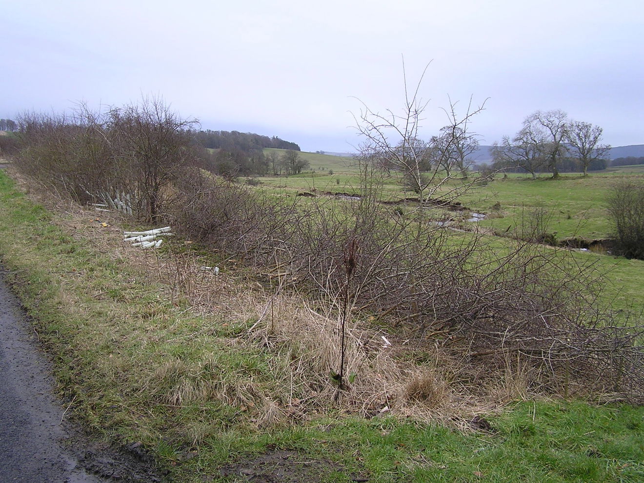 In common with most hedge planting, plastic shelters were used to protect the young plants from rabbit nibbling, but they unfortunately degrade extremely slowly, if at all. They also prevent the growth of low branches, which means the hedge bottom is very draughty, particularly in winter when grass and other plants have died back.
