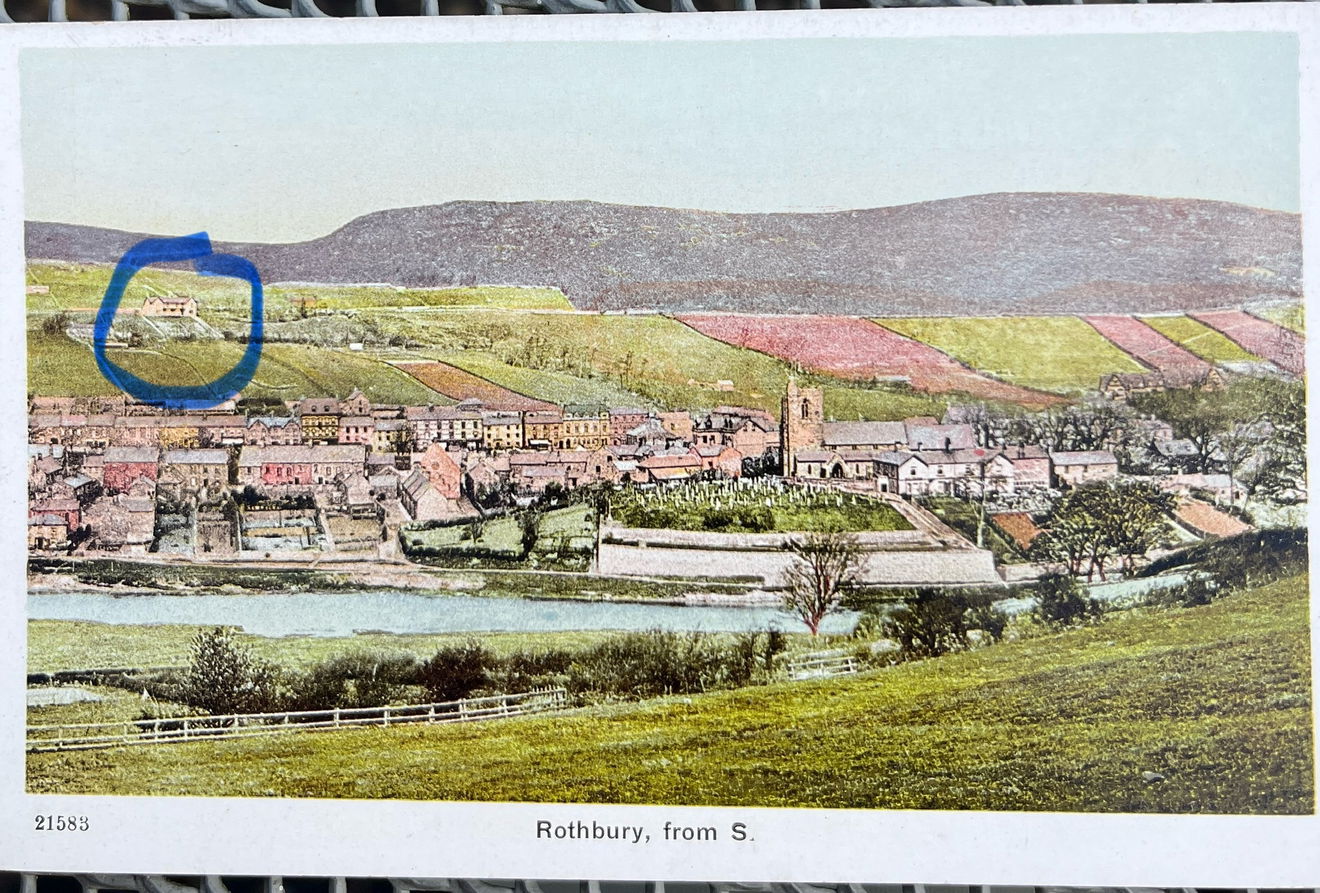 The blue circle marks where the house is, no trees where our Oak now stands.