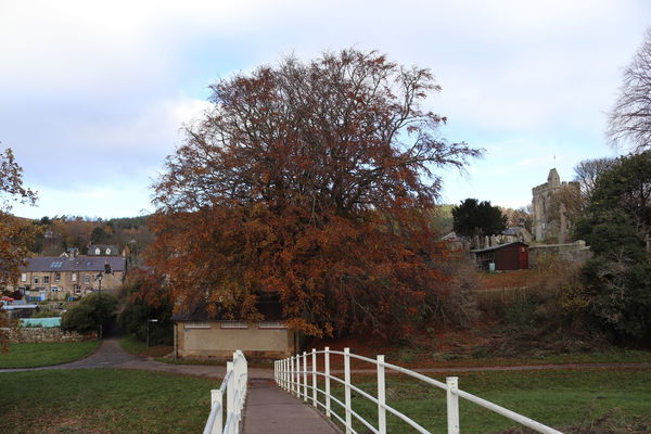 The Trail begins in the Haugh Car Park. Walk across the footbridge to the old public toilets and note the magnificent Veteran Beech Tree behind. This tree will tell you about what it has witnessed across the river, over the years.