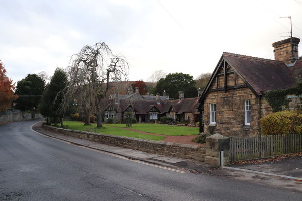 From here walk back to the main road and turn left, along to the Armstrong Cottages. Here you will find two marvellous Ornamental Weeping Ash Trees. Listen to their conversation. (Unfortunately, these trees have now been felled, replaced with two young weeping willows.).